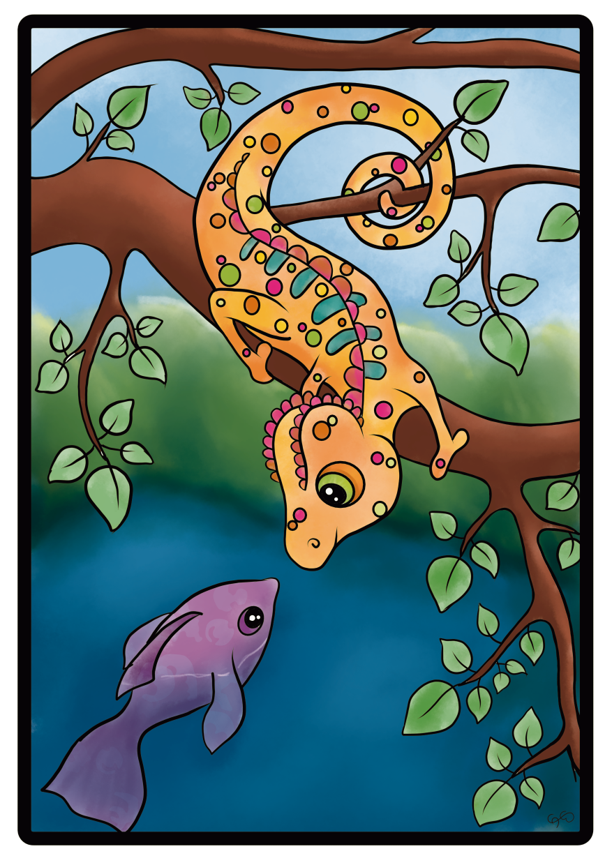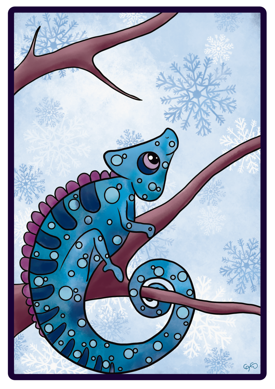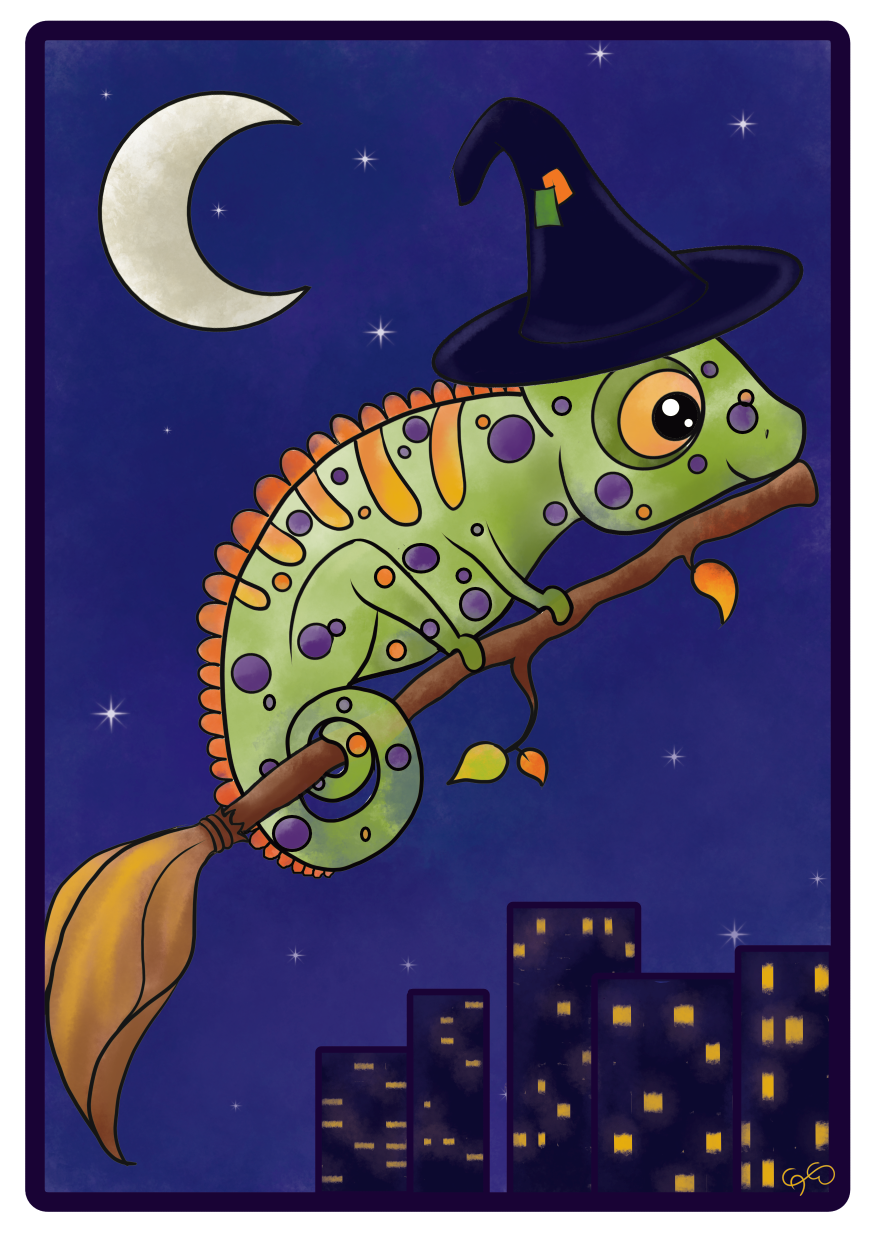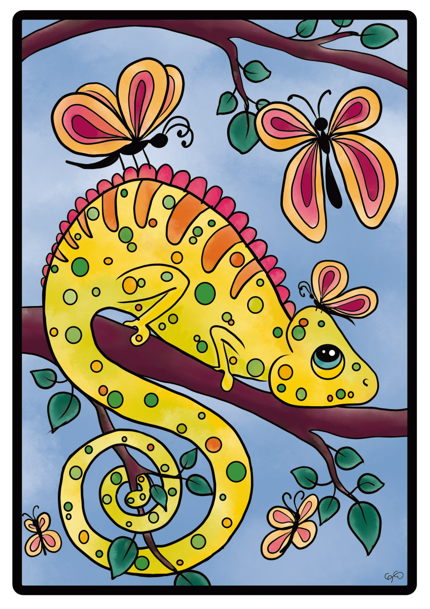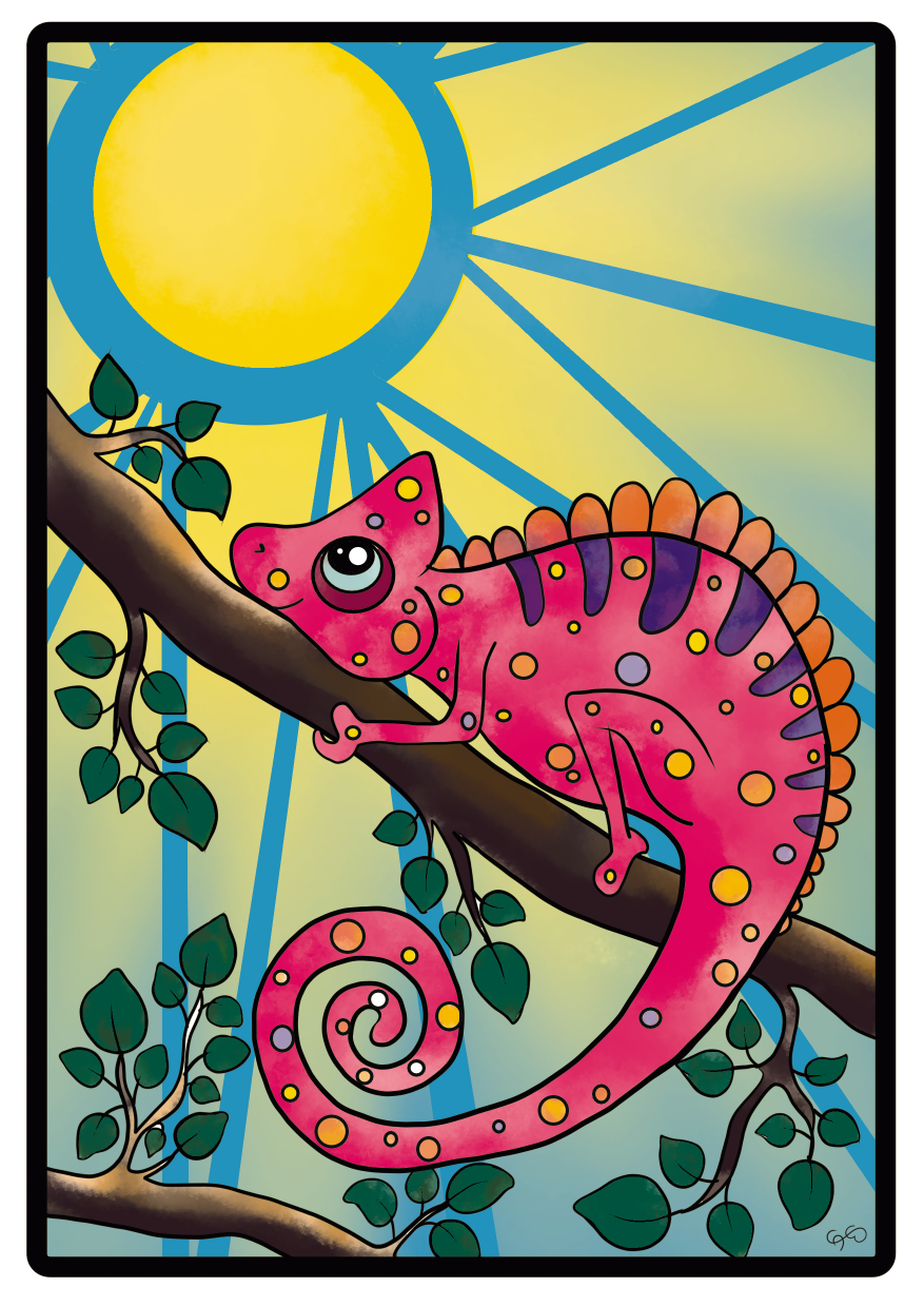 Alors oui, c’est très très différent de ce que je fais habituellement, mais franchement, ce projet était vraiment sympa à mener à son terme. Je me suis prouvée à moi même que j’étais capable de le faire, et il a été très bien reçu. Je m’autoriserai donc de mener ce genre de projet lorsque je me sentirai inspirée, mais ponctuellement… j’avais encore plein d’idées pour exploiter ces caméléons, mais je préfère m’arrêter là, parce que j’ai déjà beaucoup à faire avec les cours de DPS, les croquis d’inktober, mes études de portraits et puis une autre mini projet coup de tête et de coeur, dont je vous parlerai plus tard.