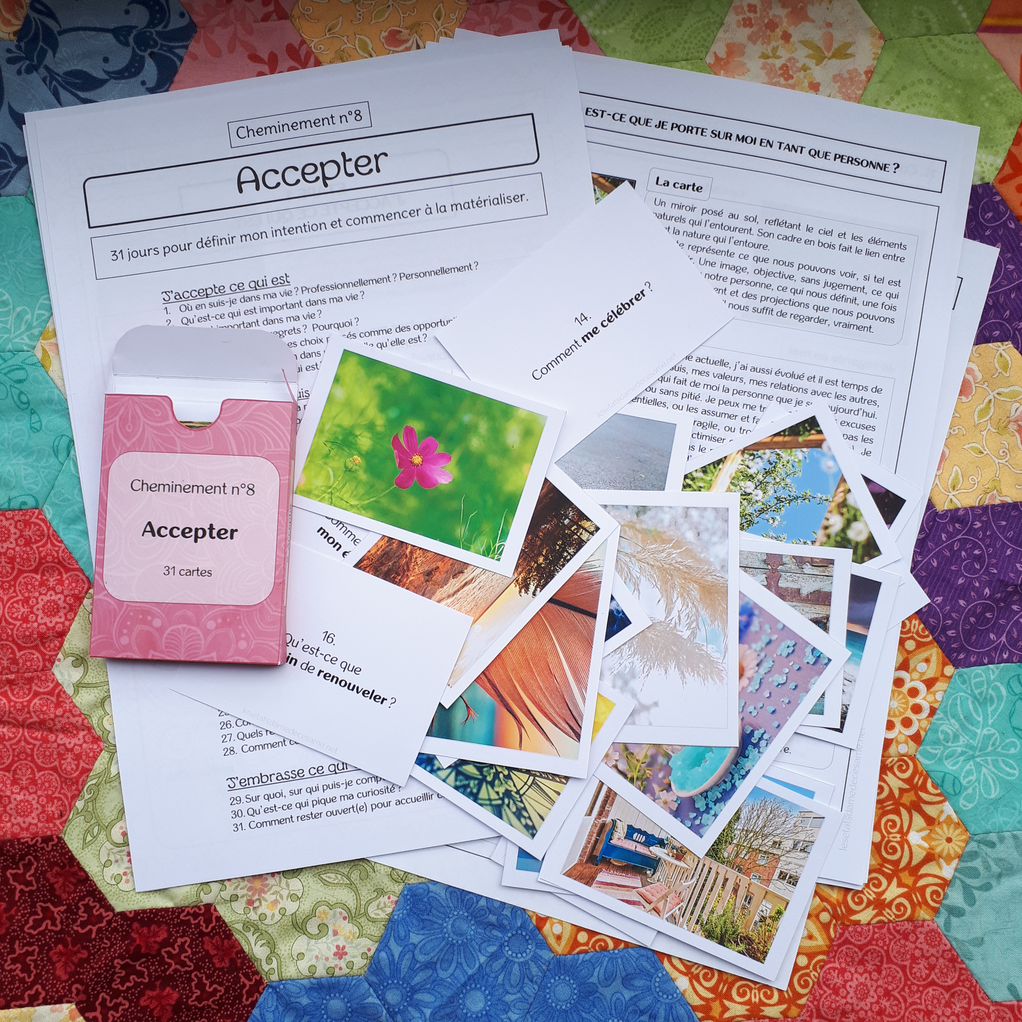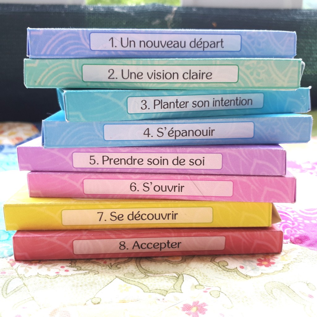J’avoue, chaque nouveau cheminement devient mon préféré, mais celui-ci particulièrement, parce qu’il amène vraiment loin du jugement, dans le discernement, dans l’acceptation mais dans l’action… Un voyage riche, sans aucun doute, que j’ai hâte de partager avec vous! Vous trouverez les cartes et le nouveau guide ici. Je suis ravie de cheminer avec vous, que ce soit ponctuellement ou au long court.