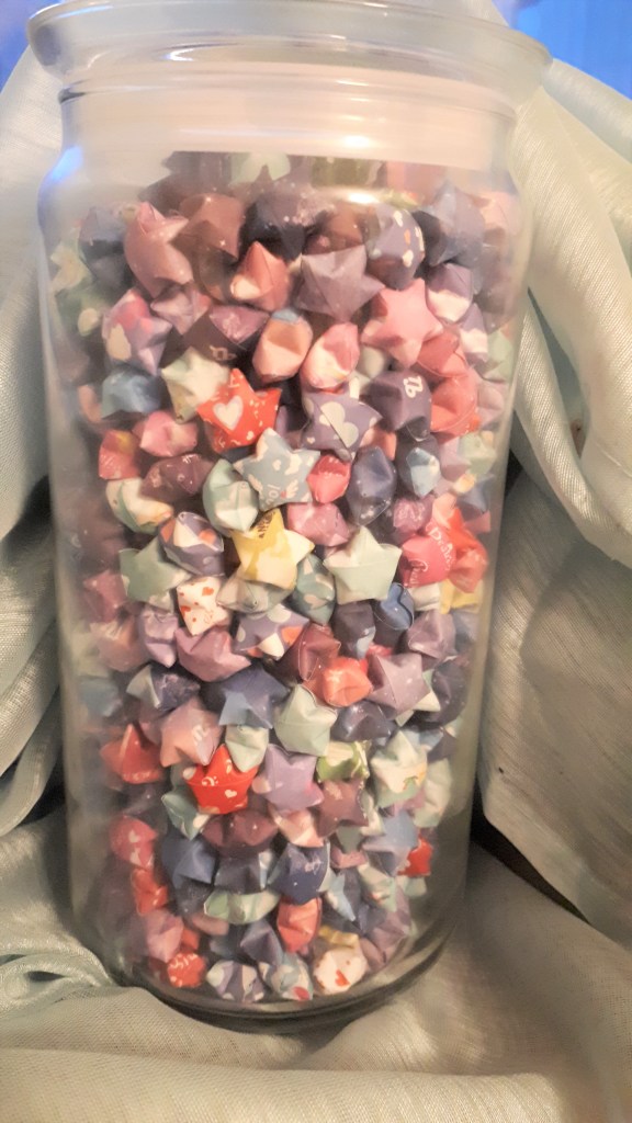 That’s my christmas present to my brother’s familly… 999 lucky stars, all filled with good thoughts and/or a smile…. told you… ‘slight’ addiction….