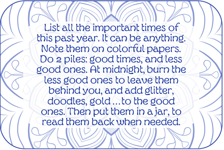 We made it! We went through this month! Today is our last challenge… I will miss you all! But Tomorrow, I start my new yearly inner journey, you are more than welcome if you want to join me. I was really happy to share my personal tradition with you all. And here is the one that started all.