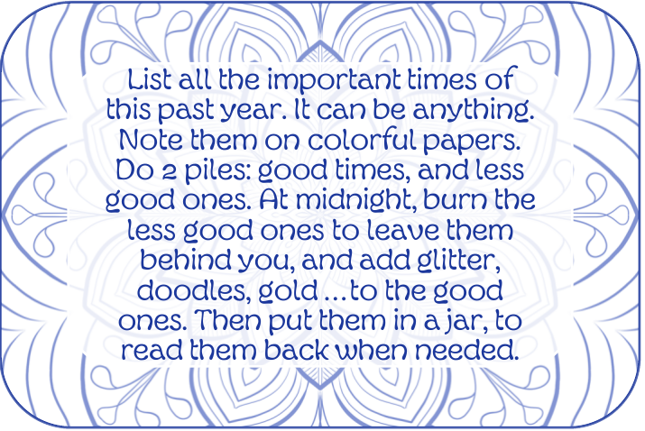 We made it! We went through this month! Today is our last challenge… I will miss you all! But Tomorrow, I start my new yearly inner journey, you are more than welcome if you want to join me. I was really happy to share my personal tradition with you all. And here is the one that started all.
