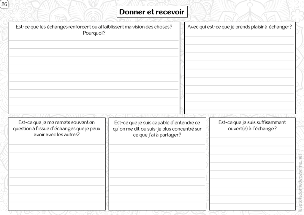 La fiche du jour vous permet de faire un point sur cette sensation d’éparpillement, avant d’agir. Attention, il s’agit ici de dresser un état des lieux sans jugement, mais dans le discernement, le plus objectivement possible.