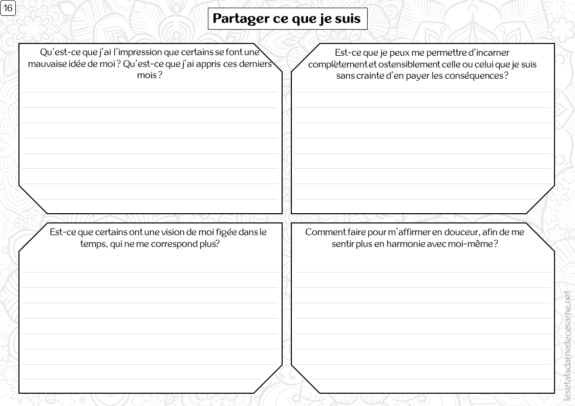 Les cartes et le guide complet (l’article du blog n’en est qu’un extrait) sont disponibles sur cette page. Je les ai créés spécifiquement pour ce cheminement, en essayant de vous proposer plusieurs modalités pour que vous puissiez cheminer à votre guise. Les cartes ont une image inspirante au recto et une question au verso. Dans le guide, chaque jour a une page dédiée, avec des rubriques qui vous inspireront, vous guideront, vous accompagneront.