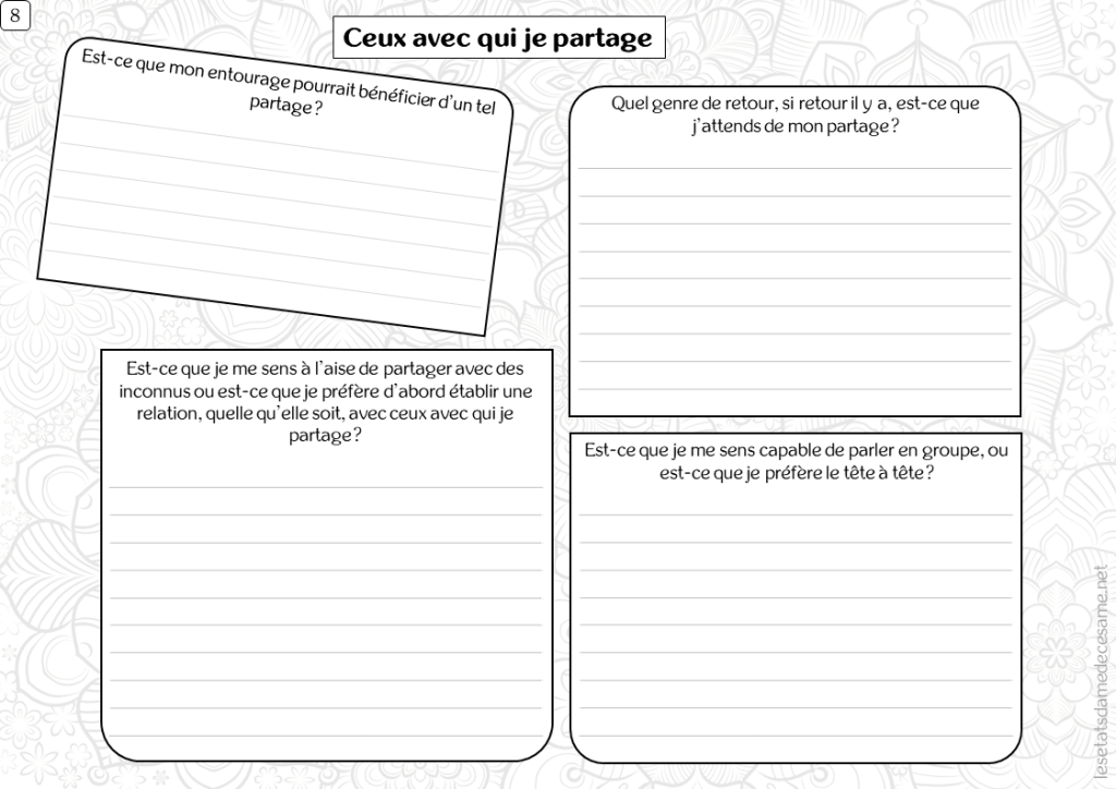Comment est-ce que je me sens à l’idée de partager ce que je fais ?