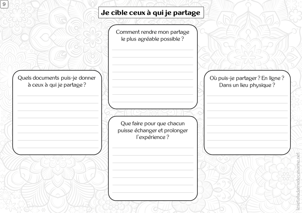 Je sais ce que je veux partager, mais je manque peut être de confiance en moi pour le faire effectivement. C’est un grand pas à faire, surtout si je n’ai jamais été dans une telle situation. Pour autant, je sais de quoi parler, à qui je veux le faire, dans quel cadre. Et puis je ne pars pas de rien. C’est quelque chose que je maitrise, que je sais faire. Il me faut juste m’assurer que je le transmette efficacement. Comme pour le reste, je procède pas à pas, en ajustant si besoin est, en construisant des outils qui m’aideront à le faire. J’ai en moi tout ce qu’il faut. Il me reste à croire en moi, en ma capacité à transmettre.