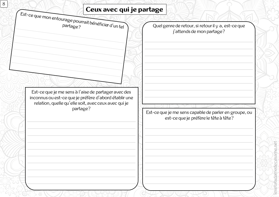 La fiche du jour vous permettra de faire un point et de voir ce qu’il vous reste à travailler. Et à faire ce fameux premier pas. Vous pouvez le faire! J’ai confiance en vous!