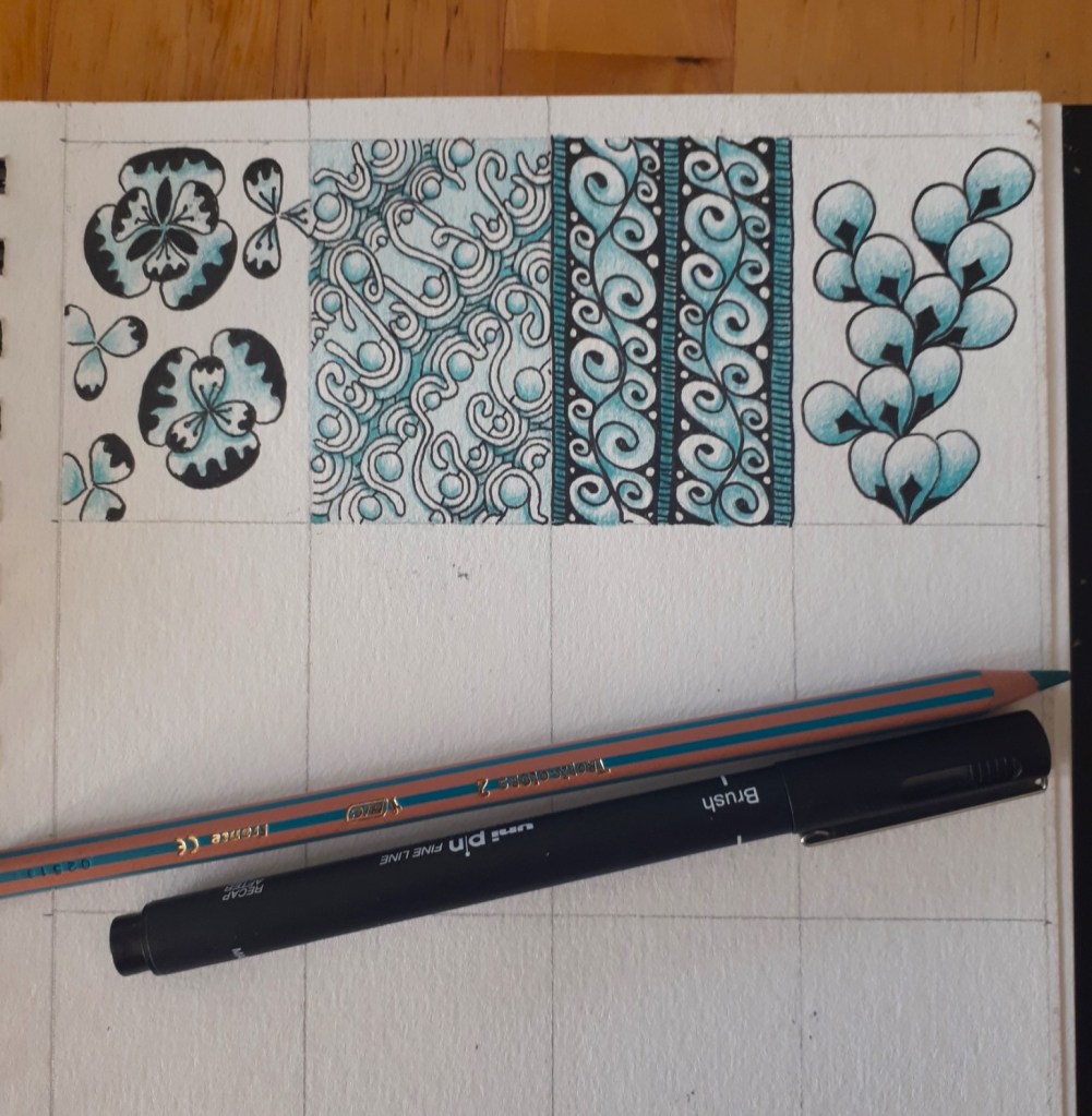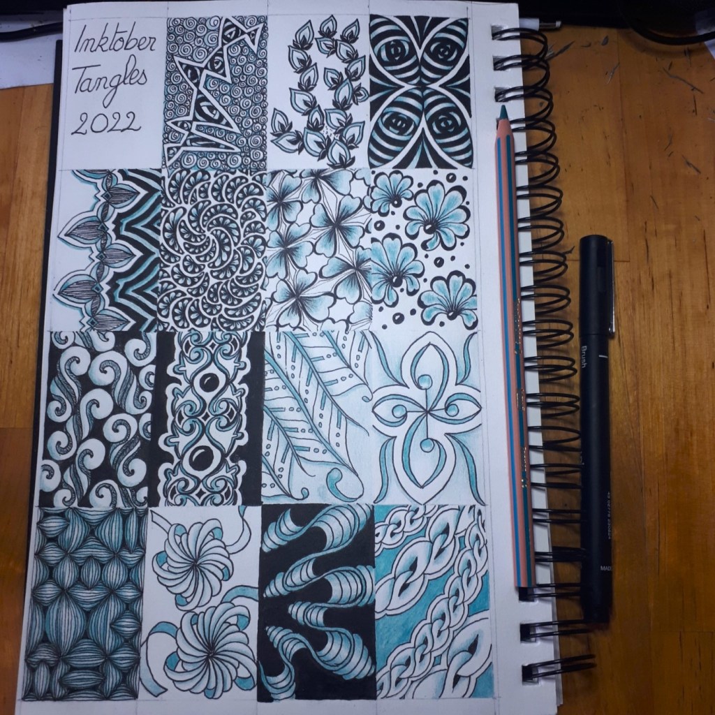 De retour de vacances, voici ma page d’inktober tangles mise à jour…. j’ai eu un petit accident avec de l’eau sur ma page hier, mais tout va bien!